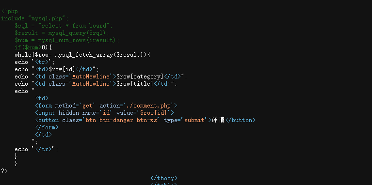 一眼看上去就是一串在与数据库进行交互的的源码,用了一个 write 分支,用了一个 comment 分支,这也与第 2 点那个两个不同的数据包联系起来,审计第一个分支我感觉写的没啥问题,将三个参数接收完值后,对它们分别使用 addslashes 转义,然后 insert 插入到数据库里面,mysql_query 这个函数就是用来执行语句的函数,没啥大问题,然后接着看第二个分支(有点复杂,也有点重要,就专门写个)