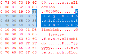 注意到虽然/var/www/html 目录下的.DS_Store 文件被删除了,但是/tmp/html 目录下的.DS_Store 文件还在,读一下,然后获取到的 16 进制数据用工具打开就会发现