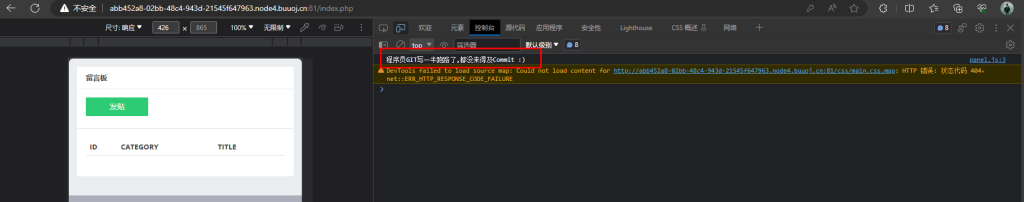 2.很明显了哈,当密码为 zhangwei666 的时候直接 302 跳转,成功登录后,就发个帖,没啥其他的功能,感觉是不是登录之后功能和界面稍微有些许不通,然后经过 f12 以及抓包测试后发现,当写帖的时候其实 url 中是有一个叫做?do=write 的包,而当写评论的时候 url 中同样有一个叫做?do=comment 的包,这也没啥用,但是在 f12 的时候,在控制台里面看到这样一句话