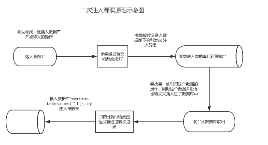 这个提示给的就很明显了哈,明明白白的二次注入,原因就是开发人员过于相信已经存在数据库里面的数据了,这里给补一张图哈