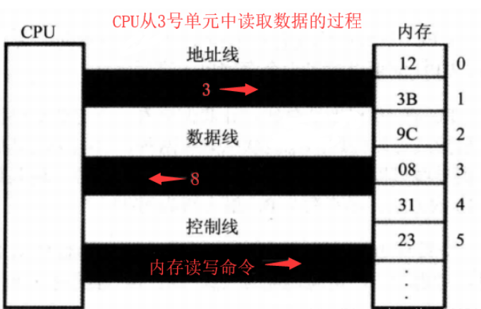 3. 存储器将 3 号单元中的数据 8 通过数据线送入 CPU,写操作与读操作的步骤相似