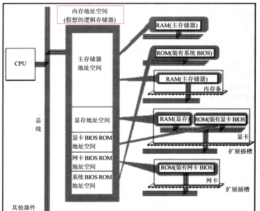 最终运行程序的是 CPU,我们用汇编语言编程的时候必须要从 CPU 的角度考虑问题,对 CPU 来讲,系统中的所有存储器中的存储单元都处于一个统一的逻辑存储器中,它的容量受 CPU 寻址能力的限制,这个逻辑存储器即是我们所说的内存地址空间
