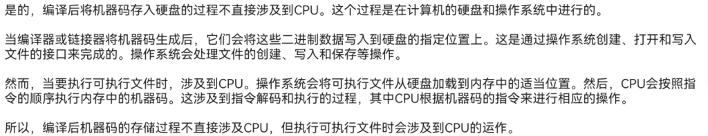 程序编译后,机器码是存在硬盘(存入硬盘的过程,也是操作系统的功劳,不会波及 CPU),在执行时,机器码被操作系统读入内存