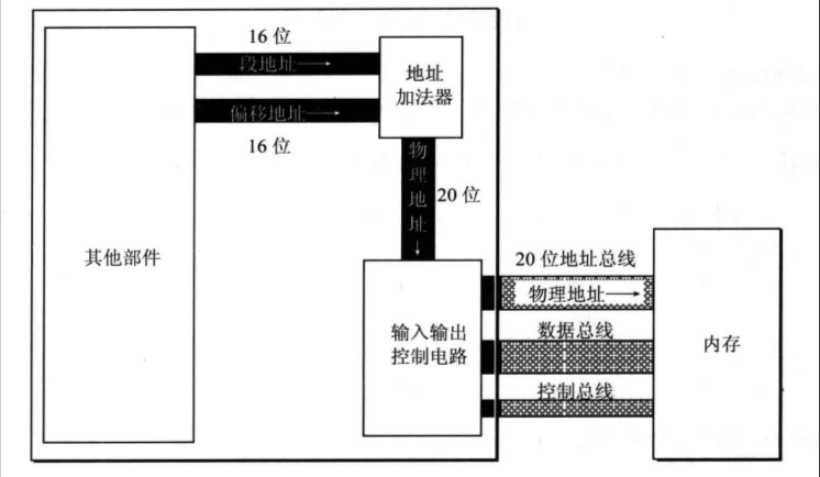 1.地址加法器将两个 16 位地址合成为一个 20 位的物理地址