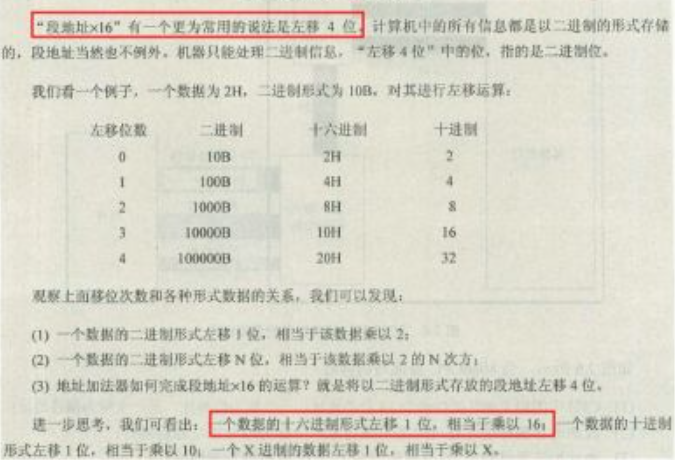 例如,8086CPU 要访问地址为 123C8H 的内存单元,1230H 左移一位(空出 4 位)加上 00C8H 合成 123C8H