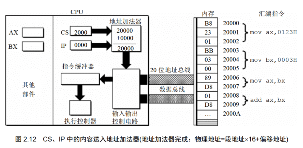 2.地址加法器采用物理地址 = 段地址 ×16 + 偏移地址的方法用段地址和偏移地址合成物理地址
