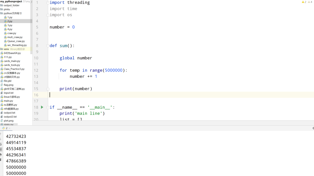 特点就是中间结果可能是乱的,但是结果总是对的,不管把 range(num)里面这个 num 设置的有多大,版本越高的 python 出现这种线程不安全的几率越小