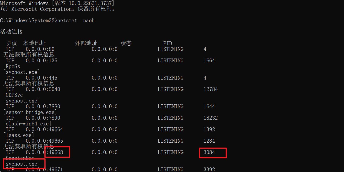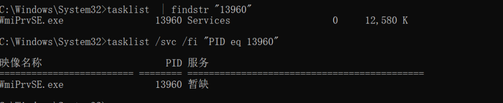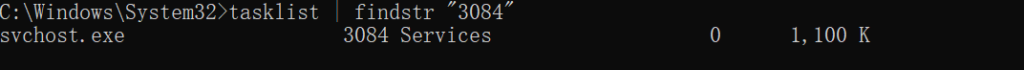 tasklist去查看所有的进程,然后用**tasklist findstr “3084”**去查看对应的程序