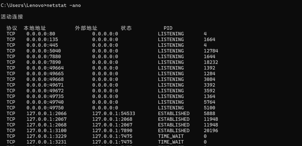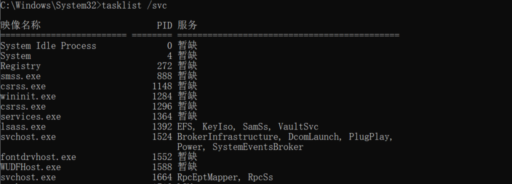 - tasklist /svc去显示所有的进程以及 pid 和服务