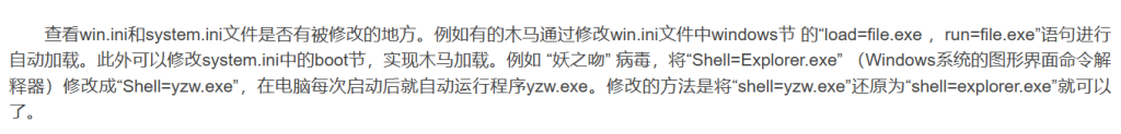- 修改 C:\Windows 目录下的 win.ini 或者是 system.ini,排查的时候重点看看这两项