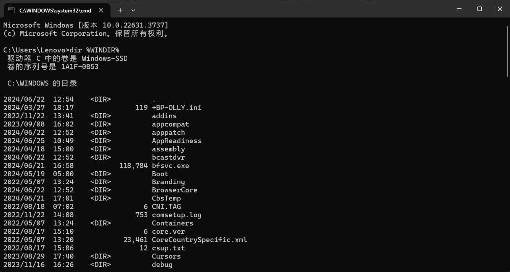 dir %WINDIR%实际上是 Windows 系统默认设置的一个环境变量,表示 Windows 系统的安装目录