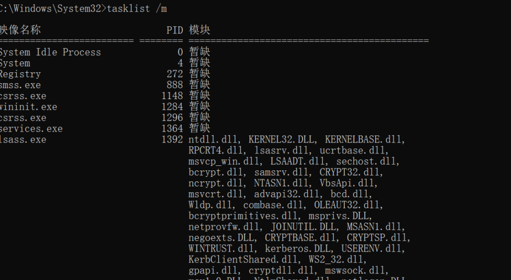 - 可输入tasklist /m去查看 exe 加载的 dll
