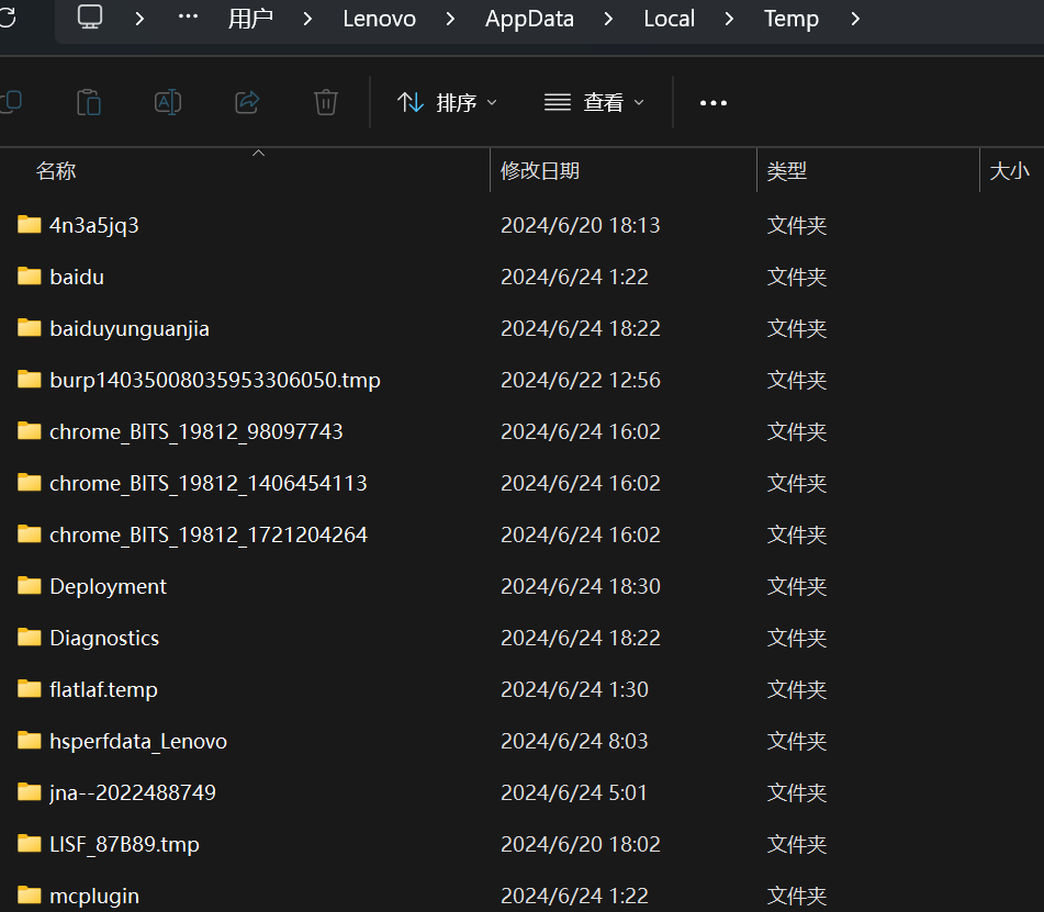 - 输入命令%temp%或者直接去文件管理器里面去输入这个