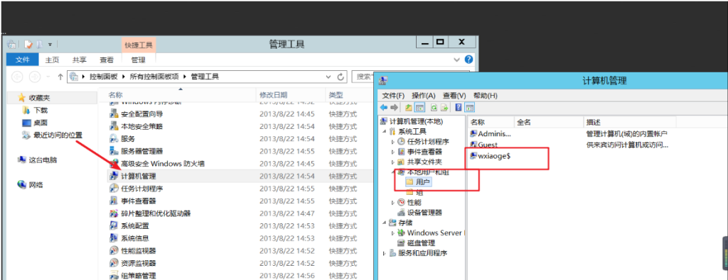 然后查看的话首先我们试一下在计算机管理 本地用户和组查看