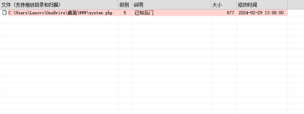 看完基本信息和敏感目录之后,先去把网站的源码 down 下来,然后放到河马,阿里云,D 盾都跑一遍,网站如果有定时备份的功能的话,还可以校验一下 md5 的值,最后 D 盾查出来了这个 system.php 是有问题的