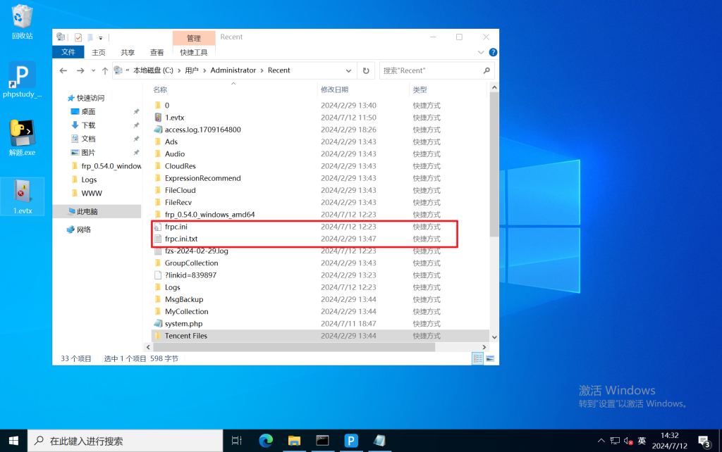 这里在最近打开的文件里面还发现了这个 frp 内网穿透工具