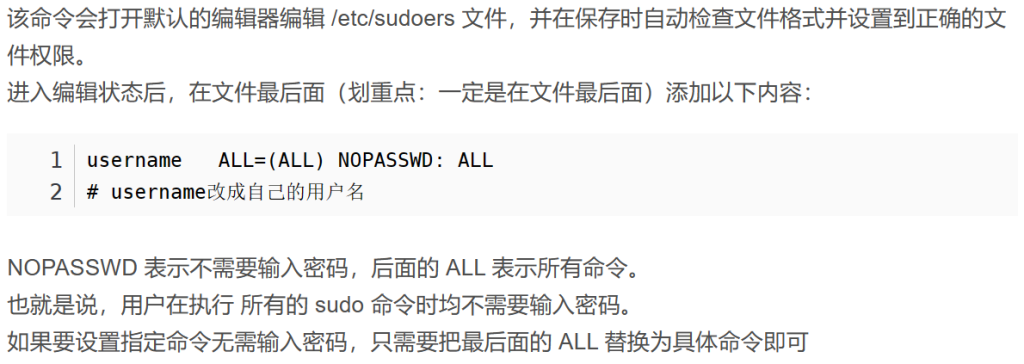 有的攻击者可能会改 linux 中某个文件的配置,改完之后对应的账户再使用 sudo 的时候就不用去输入密码了,所以用 sudo -l 去查看一下