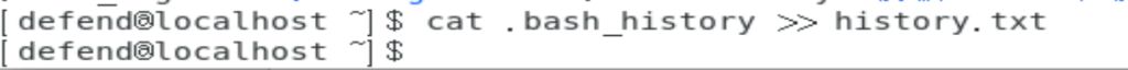 先把 history 文件给导出来一份到桌面,防止与之后的操作弄混了,就怕是攻击者直接拿到 defend 的账户和密码去登录然后操作的,所以不管攻击者是通过哪个用户去操作的,我们切换用户后第一件事情就是把这个文件导出一份到桌面去备用