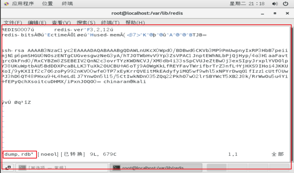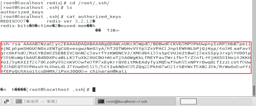 上面那张图可以发现这个 redis 服务是以 root 身份去启动的,这个很苛刻的条件已经满足了,咱们就去看看它的/root/.ssh/有没有公钥