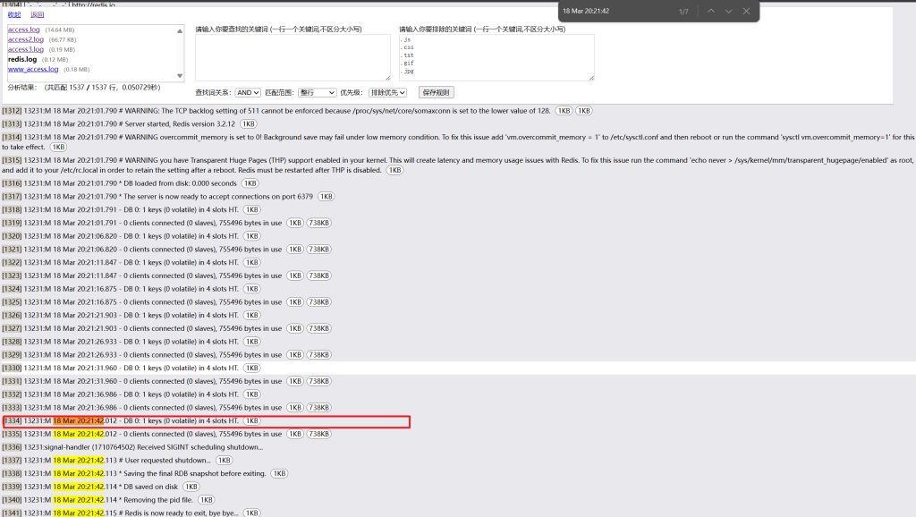 现在怀疑是 redis 出现问题了,去看看它的配置文件以及日志