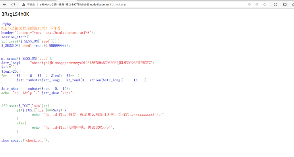 1.上来给了一个框框,且给了 10 个字符,然后应该是哪个大学出的题恶搞老师吧,常规的查看源代码,看到了 check.php,然后访问得到了源代码