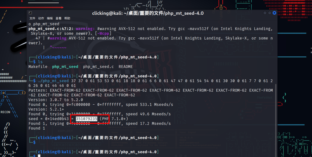 然后将这个东西带入工具爆破种子,这个还是得等等的比较漫长