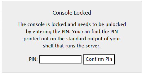 这个加密解密真的好烦,要不直接写个脚本或者 bp 爆破一下哪些被过滤了,又测试了几个,但其中一个 poc 不小心让它报错后把报错的内容给展示出来了,而且这个还有一个类似于 shell 的一个小框框,应该是 python 中与系统交互的一个命令行,但是要用这个东西就必须输入 pin 码,现在的工作重心就到了怎么样获取 pin 码上面,然后就开始了一个枯燥的学习过程