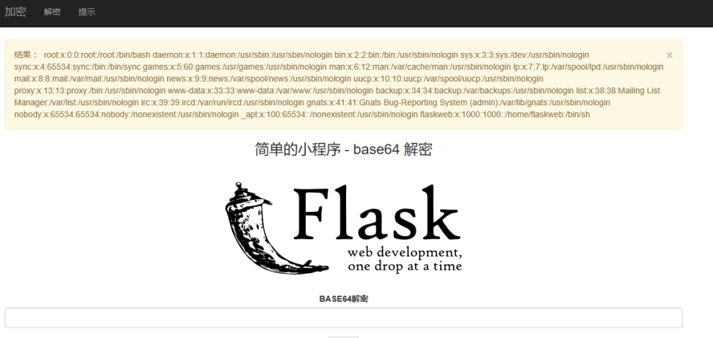 1.首先这个网站就是一个提供了 base64 加密解密功能的一个网站,然后题目以及网站都给了很多的提示,说网站是用的 flask 框架,这个框架出现最多的就是那个 ssti 模板注入,而且查看源码的格式确实是符合模板的这种格式的