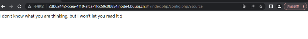http://2db62442-ccea-4f10-afca-1fcc59c0b854.node4.buuoj.cn:81/index.php/config.php/?source