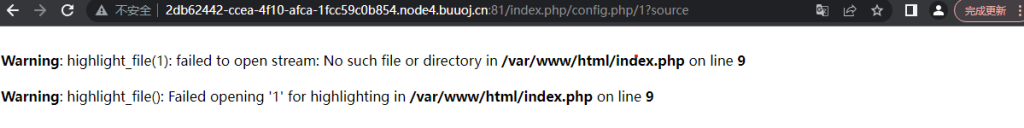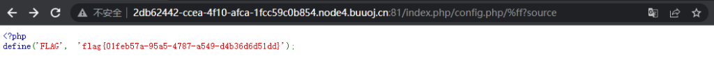 http://2db62442-ccea-4f10-afca-1fcc59c0b854.node4.buuoj.cn:81/index.php/config.php/%ff?source