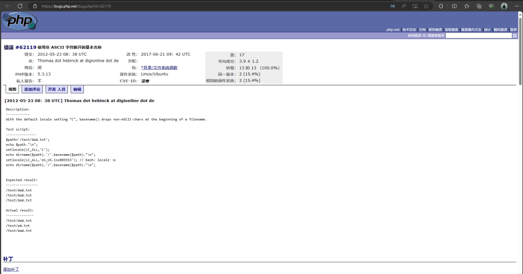 然后就去搜这个 basename 有没有啥办法可以绕过啊,结果搜到了 php 官方其实已经给过这个 bug