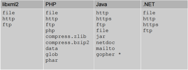 外部引用可支持 http,file 等协议,不同的语言支持的协议不同,但存在一些通用的协议,具体内容如下所示: