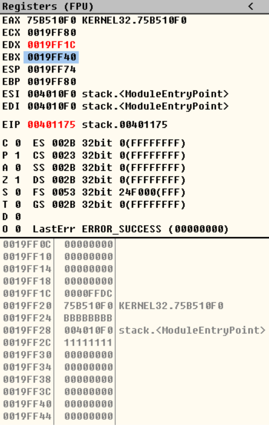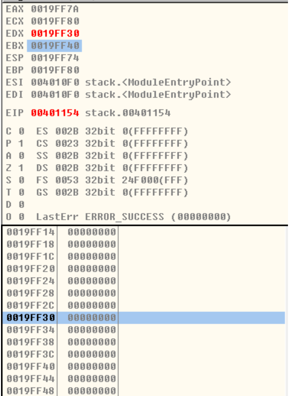 mov ebx,0x0019ff40 #栈底