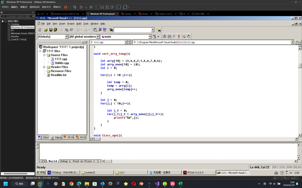 - 如果是 r = arr[x*2+y];,这个要注意的是乘法编译器是如何翻译成汇编指令的?先将 x,y 的值从内存中以此取出存到 edx 和 eax 寄存器中,然后可以使用 lea 寄存器,[立即数]的方式,直接将表达式 edx * 2 + eax 放到[]中当做一个地址立即数,那么 lea 是直接将这个计算出来的立即数存入 ecx 中,而不会去找这个立即数做表示的内存地址编号中的存的值。所以 ecx 中存的就是 x * 2 + y 的结果,再根据[ebp - 0x34 + ecx * 4]找到这个下标所在的内存空间,最后将当中的值存到 edx 中,再存到 r 表示的内存地址[ebp - 0xC]中,这么看编译器还是有点聪明的哈哈哈哈哈