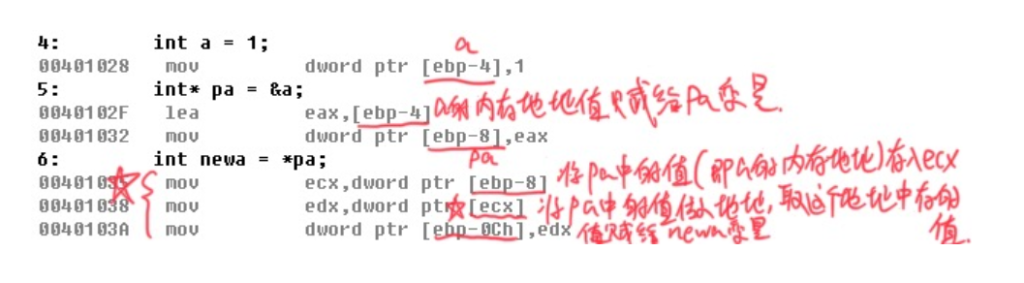char* pa = &a; //a是char类型,在前面加上&,&a就变成了char*类型;此时pa中存的就是a变量的地址值