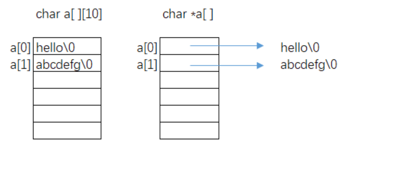 char a[][10] = {"hello","abcdefg"};