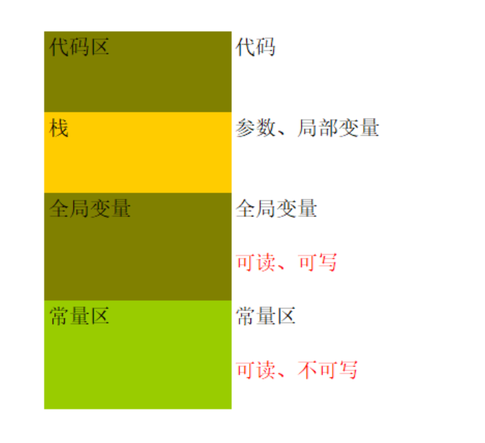 这块早在一开始逆向的时候就讲过,现在再拿出来说一下,记住常量区里面的数据是可读不可写的,一般字符串等会放到常量区里面