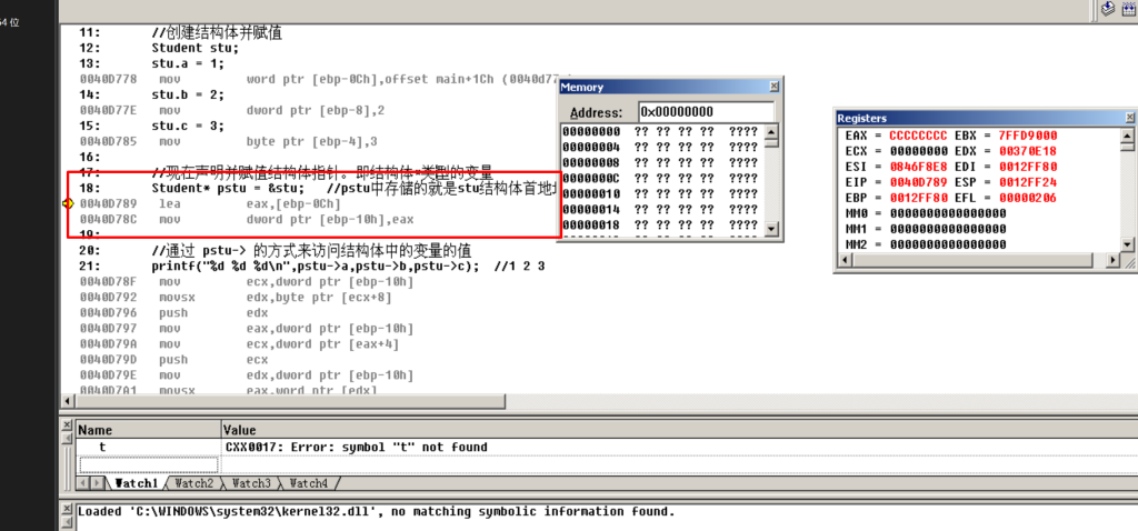 的方式来读取结构体中的变量(原理是根据宽度从结构体起始地址偏移,而不是根据变量的名字来查找的!!!)