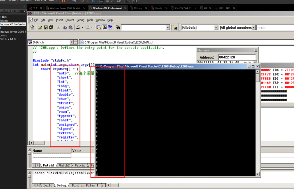 "auto", //每个常量区中的字符串结尾都有'\0'