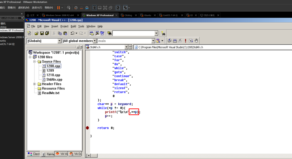 先看原本的**p,就直接得到了常量区的值,这里不能用%s 打印,我就用%c 意思一下