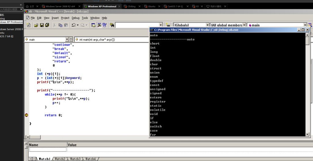 咱们在此基础上做个小实验哈,证明它和数组指针还是有那么一丝丝联系的,不同的可能就是*p++的宽度不一样,数组指针是可以自定义的,所有它操作数据也就有更多的手段,我们上面代码的 char **p = keyword 何尝不是 p 指向一个数组,然后*p 得到了具体的字符串存储的地址(这步在数组指针得**P 才能做到),然后**p 得具体值