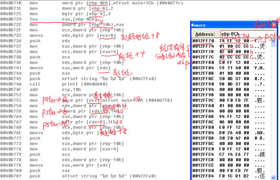你看,编译器还是分的很清楚的嘛,有 8 有 4 有 3,所有结构体指针通过这种基地址加偏移来读取数值还是很准确的