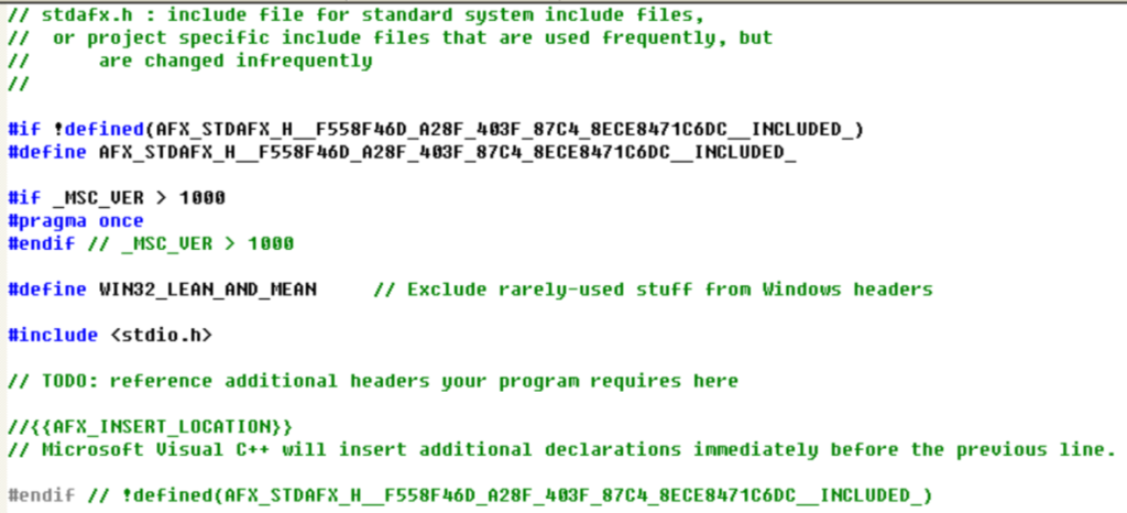我们看看编译器是怎么帮我们解决重复包含问题的:(下面是 stdafx.h 头文件中的内容)