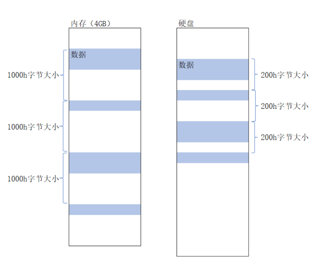 优点:由于对齐粒度一样了,当把文件从硬盘装入到内存中时可以省去很多运算,只需要确定好首地址