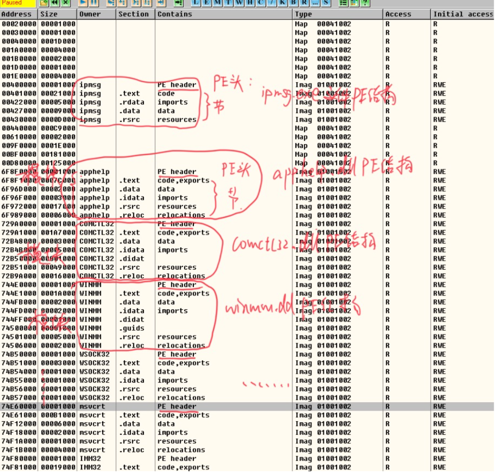 这一块的话,现在可以这么理解,一个 exe 的 PE 文件是由一堆 PE 文件组成的,exe 本身是一个 PE 文件,满足 PE 结构,但是 exe 中可能还用到了很多 dll,每一个 dll 也是一个 PE 文件,也满足 PE 结构,这些 dll 有自己的功能和作用,拼凑到一个 exe 文件中,exe 文件就有了完整的功能。所以相当于很多 PE 文件在一个 PE 文件中。又称 exe 文件有很多模块构成,每一个.dll 都是一个模块。