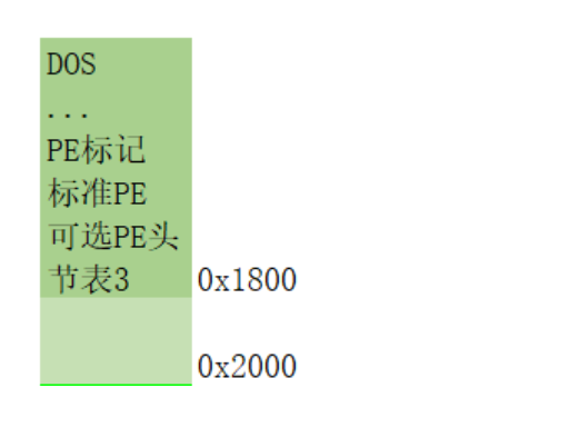 举例:假如一个可执行文件的所有头和节表加起来大小为 0x1800 字节,但是第一个节表开始位置应该是 0x2000,因为要满足文件对齐粒度 0x1000