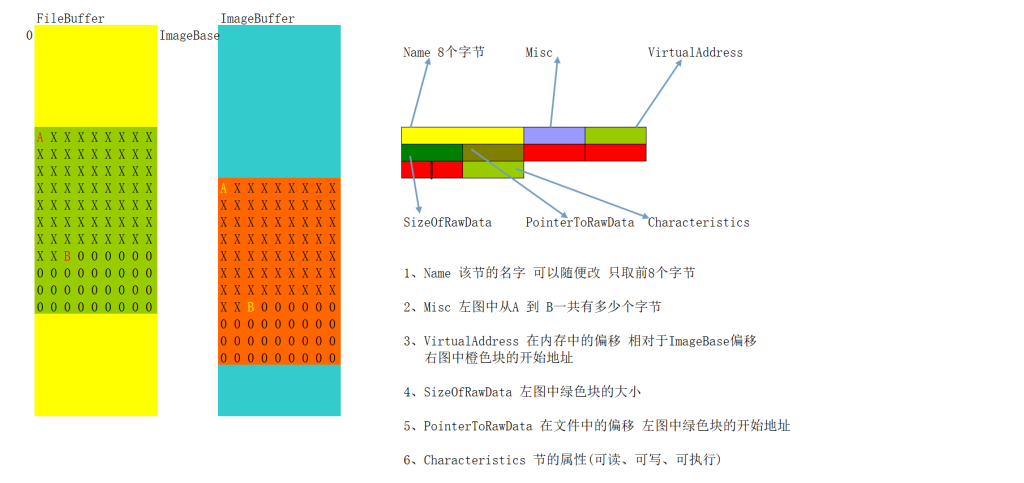 BYTE Name[IMAGE_SIZEOF_SHORT_NAME]; * //每一个节都可以取一个名字,最大长度为8字节