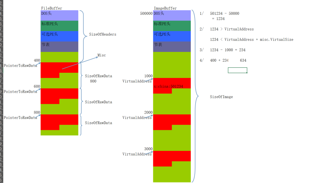 比如一个文件加载到 4GB 内存中的某一个数据地址为 0x501234,那么怎么算出这个内存地址对应到文件在硬盘上时的地址是多少,即怎么去算出文件偏移地址
