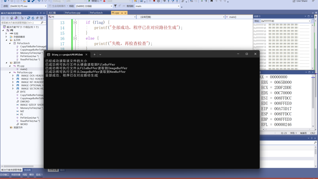 printf("已成功将可执行文件从ImageBuffer读取到NewBuffer\n");